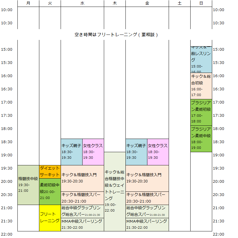 時間割(キングダムエルガイツ立川支部の場合)